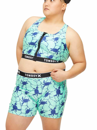 Tomboy X breaks the typical swimsuit mold, and does so with fashion and pizazz. This brand’s main focus is on creating affordable swimsuits that make anybody, nobody their gender, feel confident. With gender-neutral tanks, varying degrees of short lengths, and funky prints, Tomboy X is redefining what swimwear can look like.